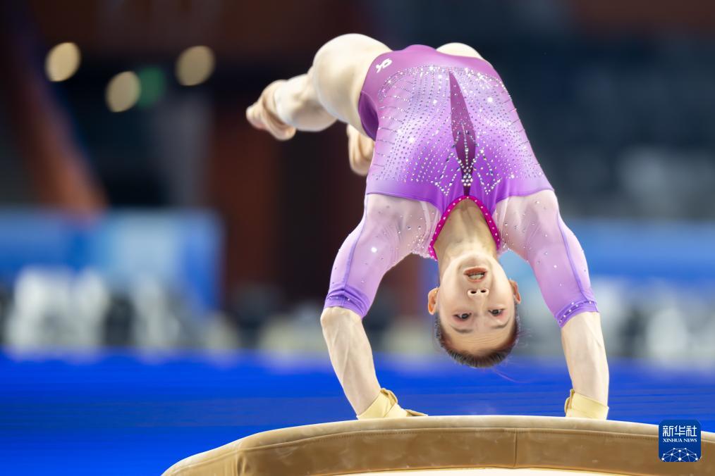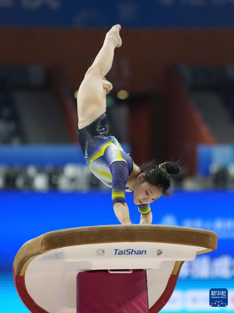 11月13日,湖北队选手赵佳怡在跳马比赛中。