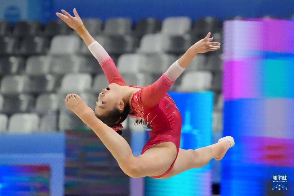 11月13日,湖北队选手昌若涵在自由操比赛中。