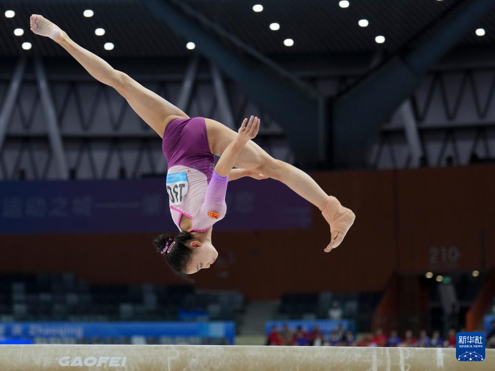 11月13日,湖北队选手张可欣在平衡木比赛中。