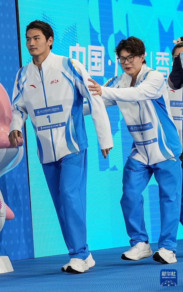 11月13日。冠军浙江队选手吴卿风、余依婷、谢以忱和徐嘉余(左从至右)在颁奖仪式后。