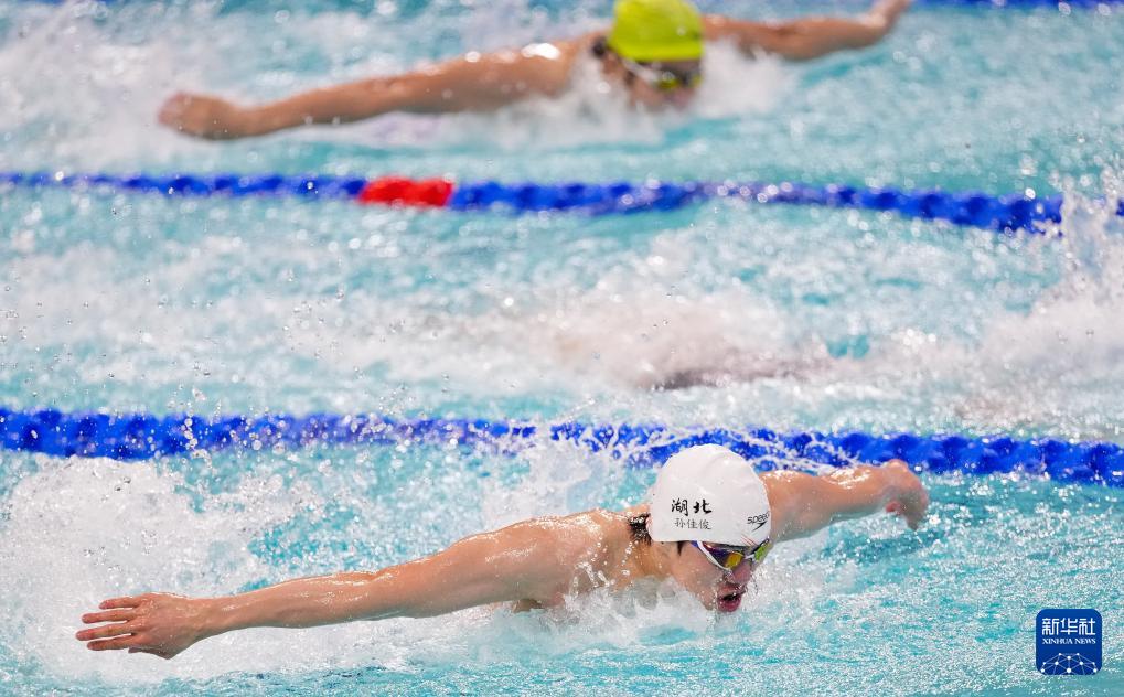 11月13日,湖北队第三棒选手孙佳俊在比赛中。最终,湖北队获得季军。
