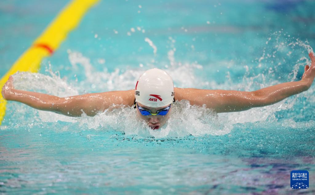 11月13日,江苏队第三棒选手张雨霏在比赛中。最终,江苏队获得亚军。