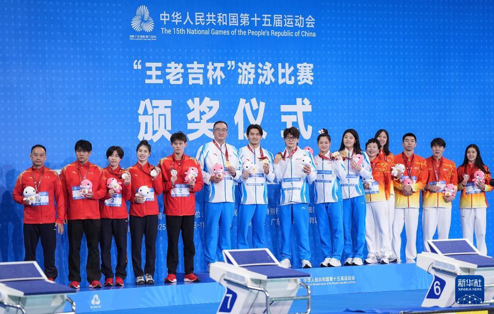 当日,第十五届全国运动会游泳男女4X100米混合泳接力决赛在广东省深圳市举行。
