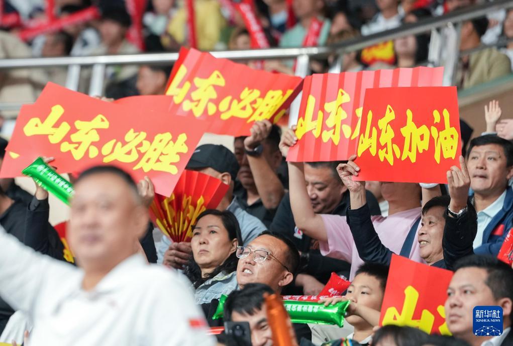 11月13日,山东队球迷在比赛中为球员呐喊加油。