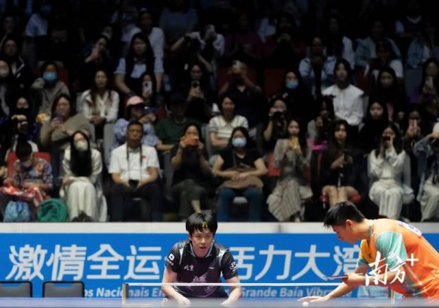 11月10日,全运会乒乓球男子单打比赛,观众在球员发球前暂停助威。董天健 摄