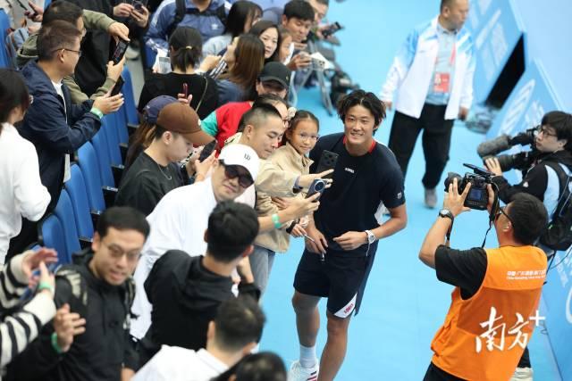 11月3日,大量球迷来到全运会赛场,与球员张之臻在赛后热情互动。许舒智 摄