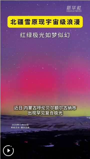 近日,内蒙古呼伦贝尔额尔古纳市出现罕见复合极光,红绿交织的极光晕染天际,绚烂夺目。