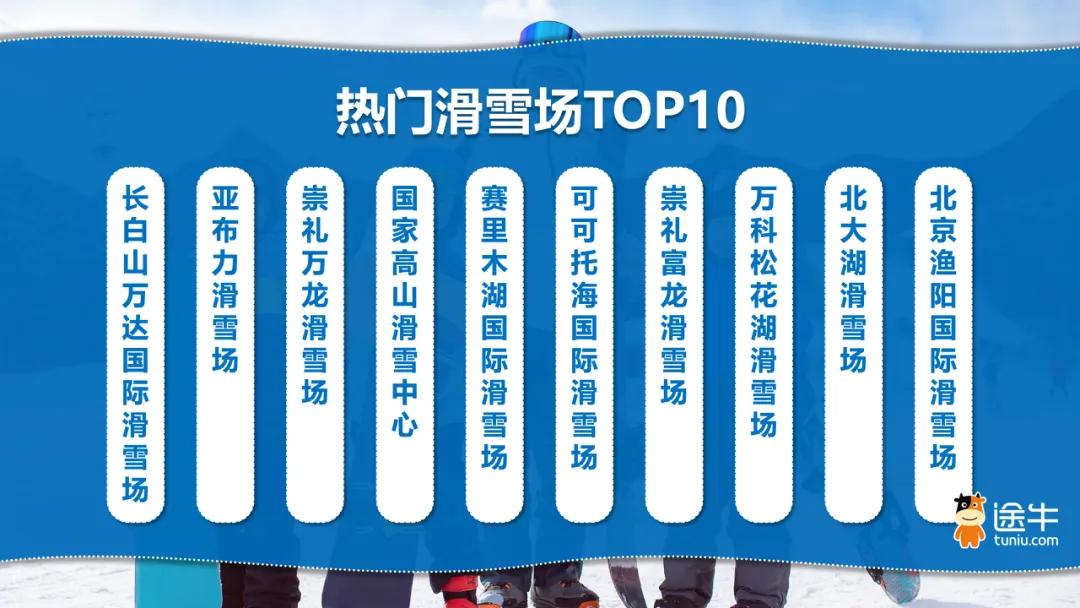 热门滑雪场方面,长白山万达国际滑雪场、亚布力滑雪场、崇礼万龙滑雪场、国家高山滑雪中心、赛里木湖国际滑雪场、可可托海国际滑雪度场、崇礼富龙滑雪场、万科松花湖滑雪场、北大湖滑雪场、北京渔阳国际滑雪场等截至目前的预订热度排名靠前。