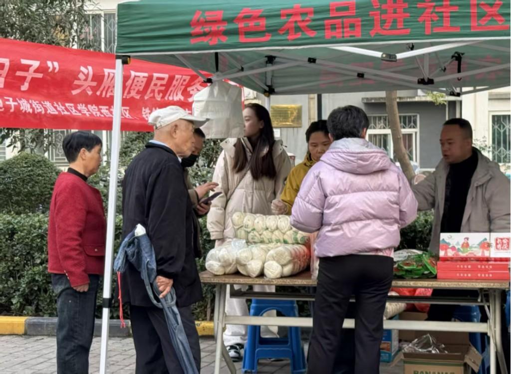集市另一侧,新鲜蔬菜、水果、粮油等农副产品琳琅满目,品质优良、价格实惠,吸引众多居民驻足选购。“不用出小区就能买到新鲜菜,太方便了!”一位阿姨提着刚买的青菜笑着说。