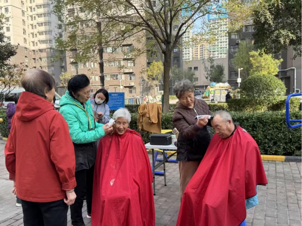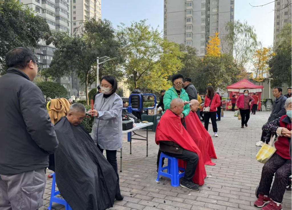 理发区,志愿者手持剪刀,为老人和儿童精心修剪发型,一剪一梳间传递着邻里温情。