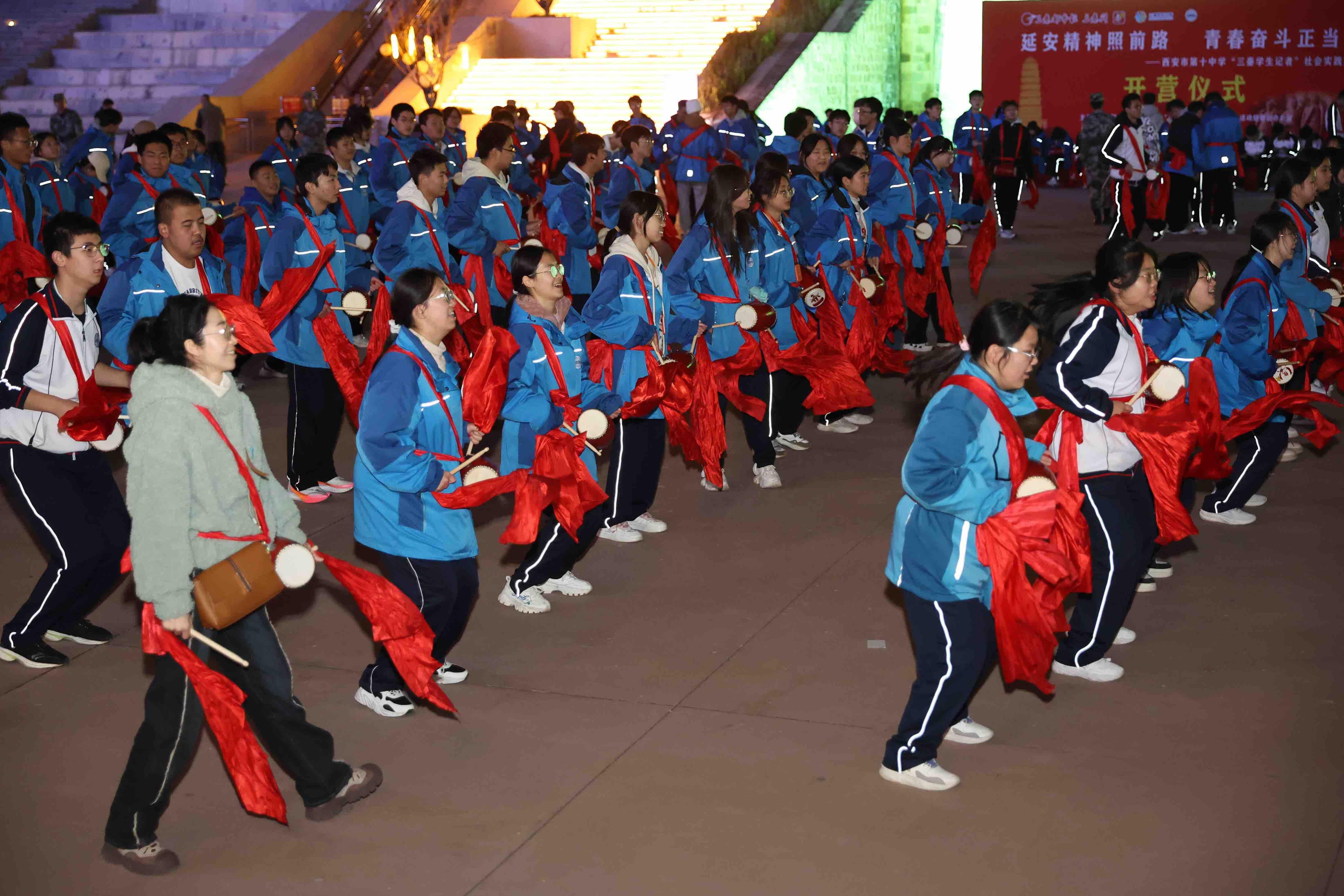 傍晚,三秦学生记者们围着篝火尽情释放青春活力,他们认真学习了具有浓郁陕北特色的安塞腰鼓。在老师的指导下,学生们穿上传统服饰,手持鼓槌,认真学习鼓点与步伐。此次体验不仅让学生们感受到非遗文化的魅力,也为他们的延安之旅增添了浓墨重彩的一笔。