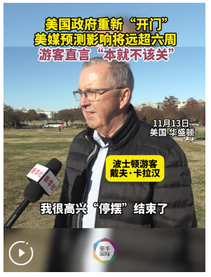 来自美国波士顿的戴夫·卡拉汉告诉新华社记者,他很高兴政府“停摆”结束了,并且认为早就该结束了,“甚至本不应发生”。他一早从波士顿飞来,本担心航班会出现延误,好在一切顺利。他非常感谢所有按时到岗的空中交通管制员,“很高兴他们到岗上班”。
