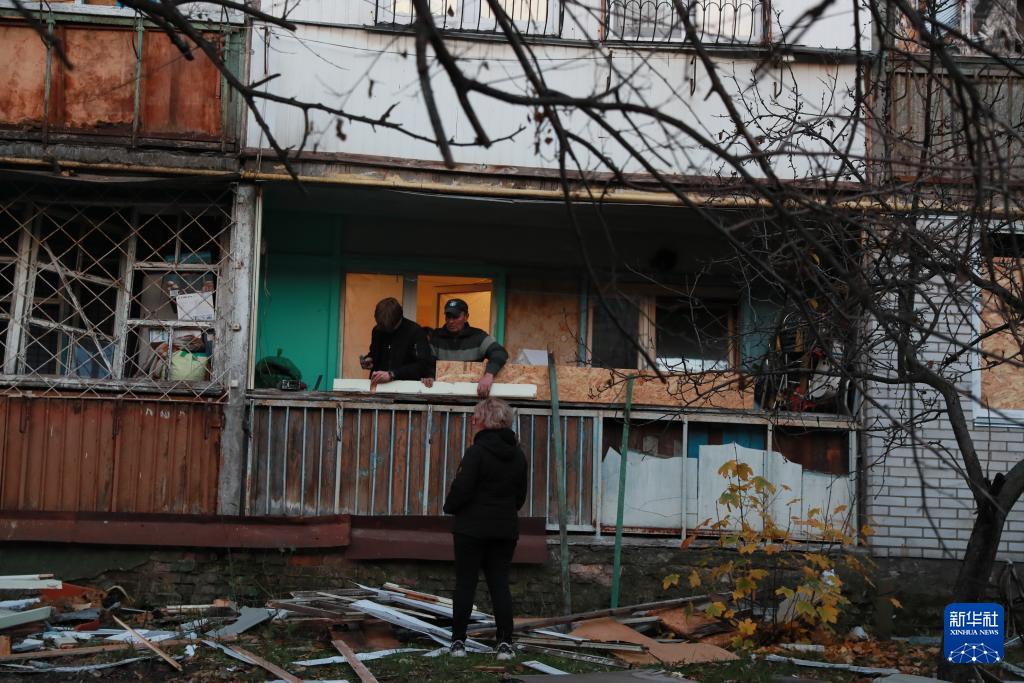 11月14日,在乌克兰首都基辅市第聂伯区,当地居民对遭受空袭损毁的房屋进行修缮加固。新华社记者 李东旭 摄 乌克兰首都基辅市军事管理局局长特卡琴科14日上午在社交媒体发文称,当天凌晨俄军对基辅市发动的大规模空袭已造成4人死亡,另有27人受伤。 11月14日,在乌克兰首都基辅市第聂伯区,当地居民站在遭受空袭损毁的房屋前。新华社记者 李东旭 摄 特卡琴科称,受伤人员中包括两名儿童,所有受伤人员均得到救治,其中15名受伤人员已入院接受治疗。 11月14日,在乌克兰首都基辅市第聂伯区,当地居民对遭受空袭损毁的房屋进行修缮加固。新华社记者 李东旭 摄 乌总统泽连斯基14日上午在社交媒体发文向空袭伤亡人员家属表示慰问。他表示,乌方正在使用远程火力“回应”俄方空袭,并呼吁欧美向乌提供额外防空系统和拦截导弹。 11月14日,在乌克兰首都基辅市第聂伯区,当地居民对遭受空袭损毁的房屋进行修缮加固。新华社记者 李东旭 摄 泽连斯基说,当天凌晨俄军向乌境内发射了430架无人机和18枚导弹,其中包括“锆石”高超音速导弹和“伊斯坎德尔”弹道导弹。俄军空袭的主要目标是基辅市,有数十栋高层建筑受损。此外,基辅州、哈尔科夫州、敖德萨州、苏梅州也遭到袭击。 11月14日,在乌克兰首都基辅市第聂伯区,当地居民对遭受空袭损毁的房屋进行清理。新华社记者 李东旭 摄