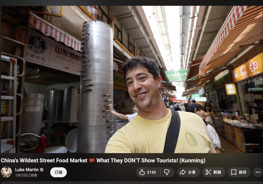 科技之外,中国文化同样令人着迷。加拿大博主“Luke Martin”直接走进了昆明大观篆新农贸市场,在一餐一饭的烟火气里,体验当地人的生活,了解其特色美食文化,更有不少用户在其评论区里表达了对中国饮食文化的赞美和向往。
