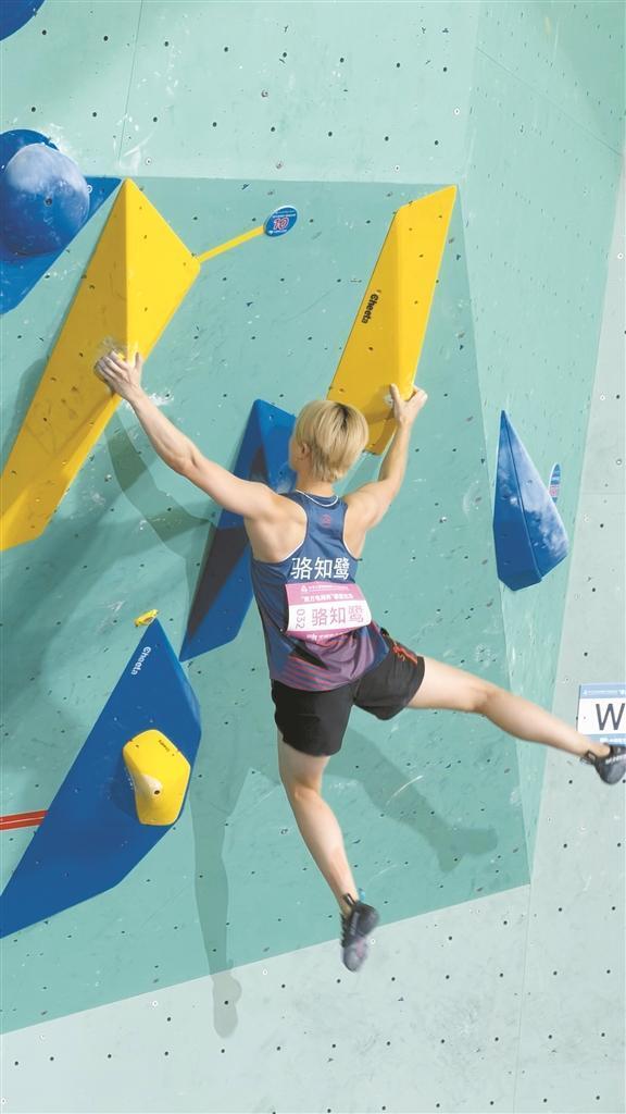11月15日,陕西选手骆知鹭在十五运会攀岩项目女子攀石决赛中获得第四名。图为骆知鹭在比赛中。