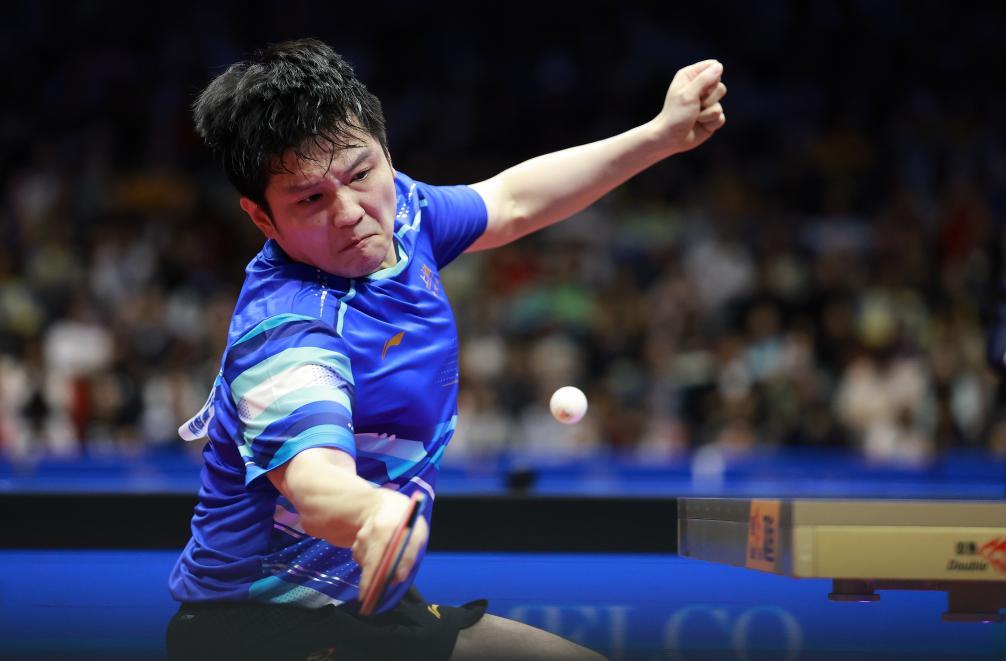11月15日,樊振东在比赛中回球。新华社记者 梁旭 摄