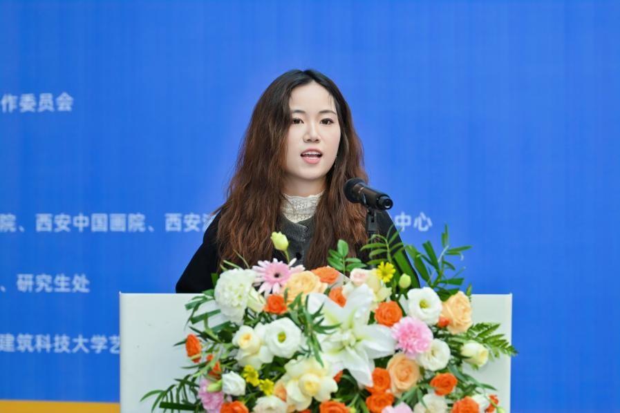 西安美院中国画学院副院长、本次展览的策展人王兴华,西安建筑科技大学艺术学院院长蔺宝钢,西安中国画院院长王犇,研究生导师代表、设计艺术学院刘莹,参展学生代表、中国画学院康怡敏,参展外籍留学生代表、书法系方承乐依次发言。