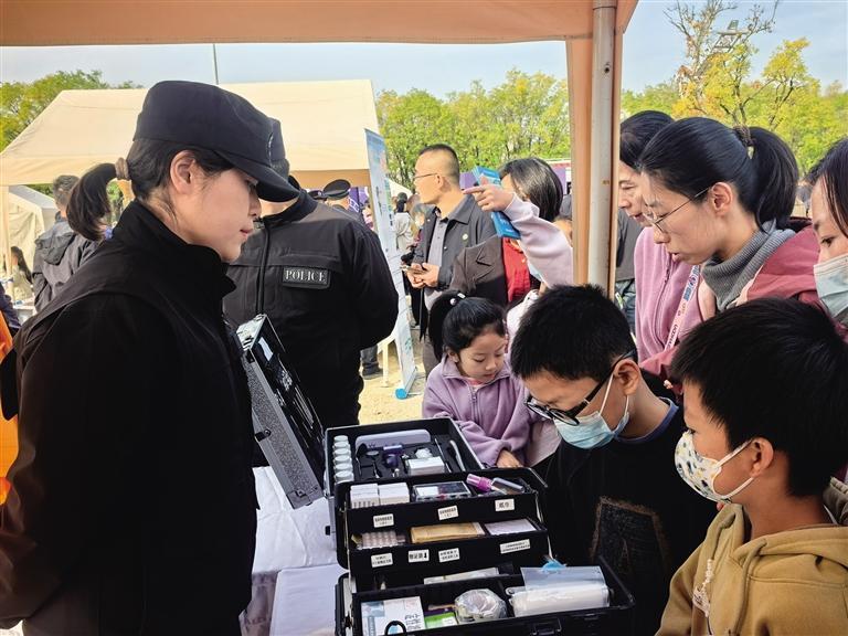 11月1日,在大明宫国家遗址公园,“警彩西安 汇聚长安——2025西安公安第三届警营开放日”活动火热举行。特警、刑警等16个警种的公安干警,在现场进行警务技能展示和安全知识、防诈骗小技巧宣传普及。各种互动游戏吸引众多市民参与。