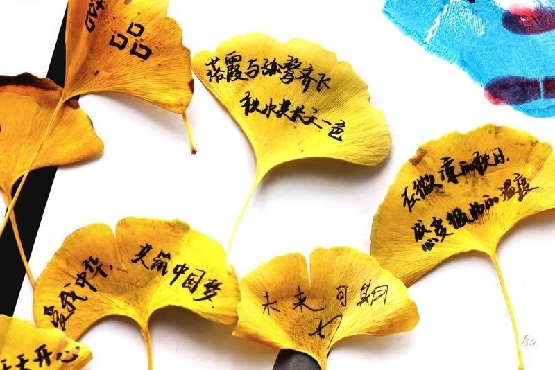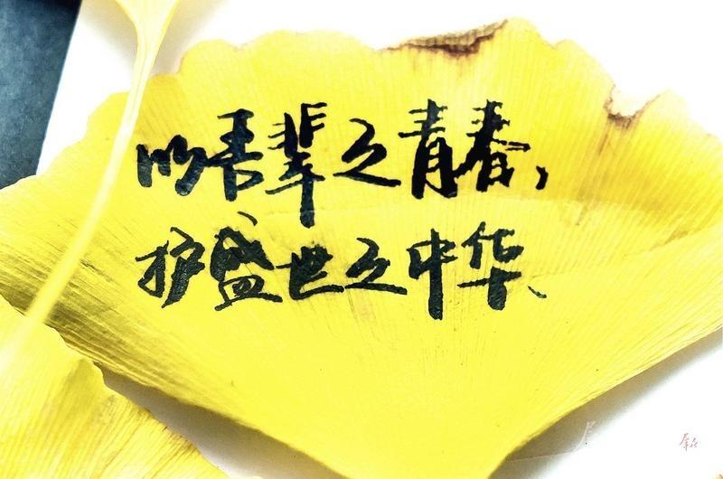 最动人的莫过于落叶题字环节。学子们在方寸叶片上挥毫泼墨,既有“秋风生渭水,落叶满长安”的古韵新声,礼赞长安大地的深厚底蕴;也有“停车坐爱枫林晚,双叶红于二月花”的温情寄语,传递对师友的美好祝福;更有“祖国利益高于一切”的校训与青春誓言,将“励志图存、自强不息”的信念镌刻于心。这些带着墨香的落叶,串联起古今情怀与环保初心,记录着成长的足迹。