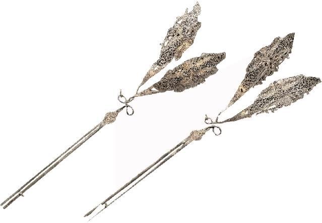 说到钗,早在先秦时期,我国女子成年就会配钗,“裙钗”也是古代妇女的代名词。早期,钗的形制比较简单。到隋唐时期,钗的原料发展到金、银、铜、玉、骨、象牙、琉璃等,钗的造型更加丰富多样。根据钗首的造型,钗还分为花钗、燕钗、凤钗等不同的种类。