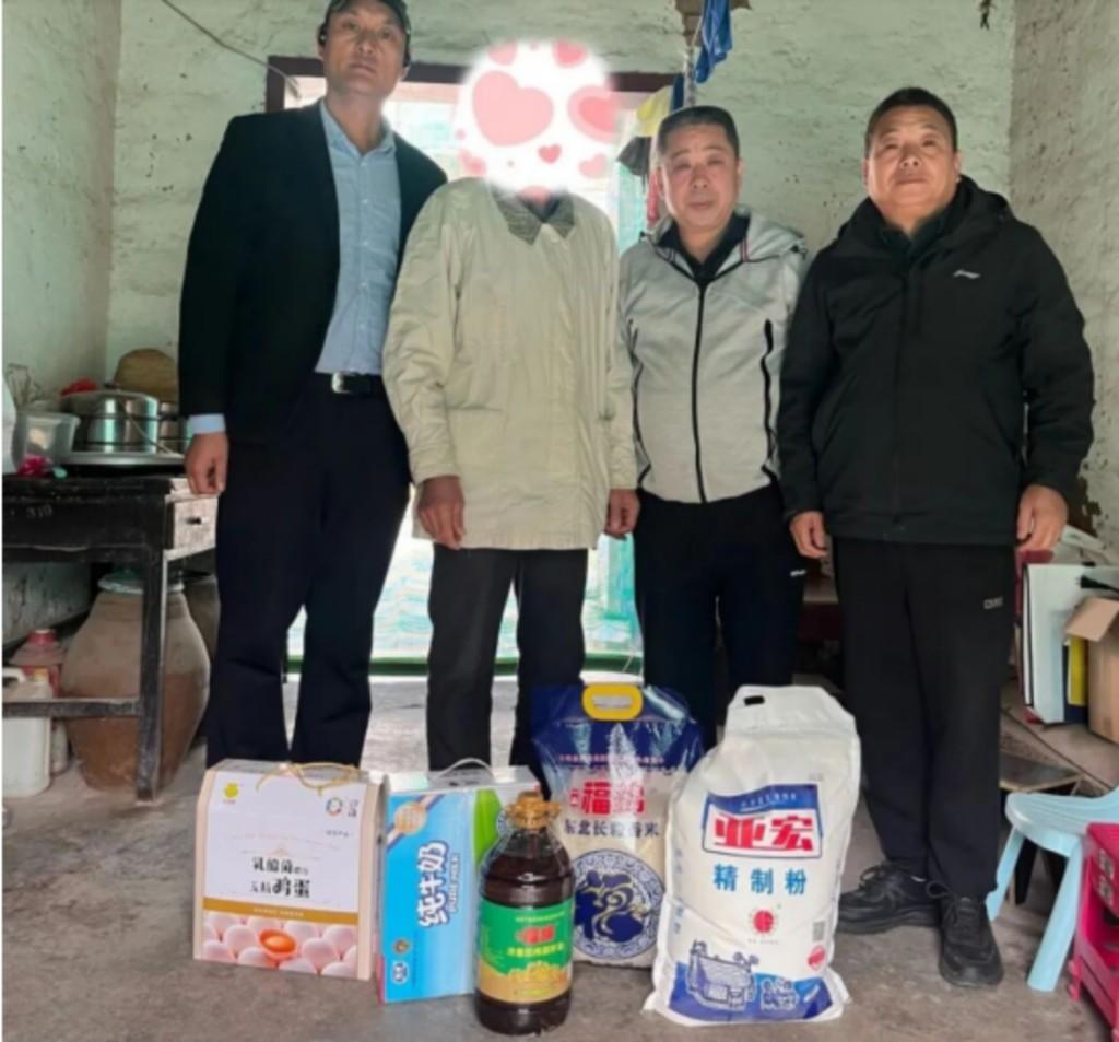 在村干部的带领下,慰问组成员刘旭东、岳江澎等人逐户登门,将米、面、油等生活物资送到困难群众手中。在一位患病村民的床前,慰问人员俯身轻语、目光关切,一句句暖心问候传递着深情厚意。