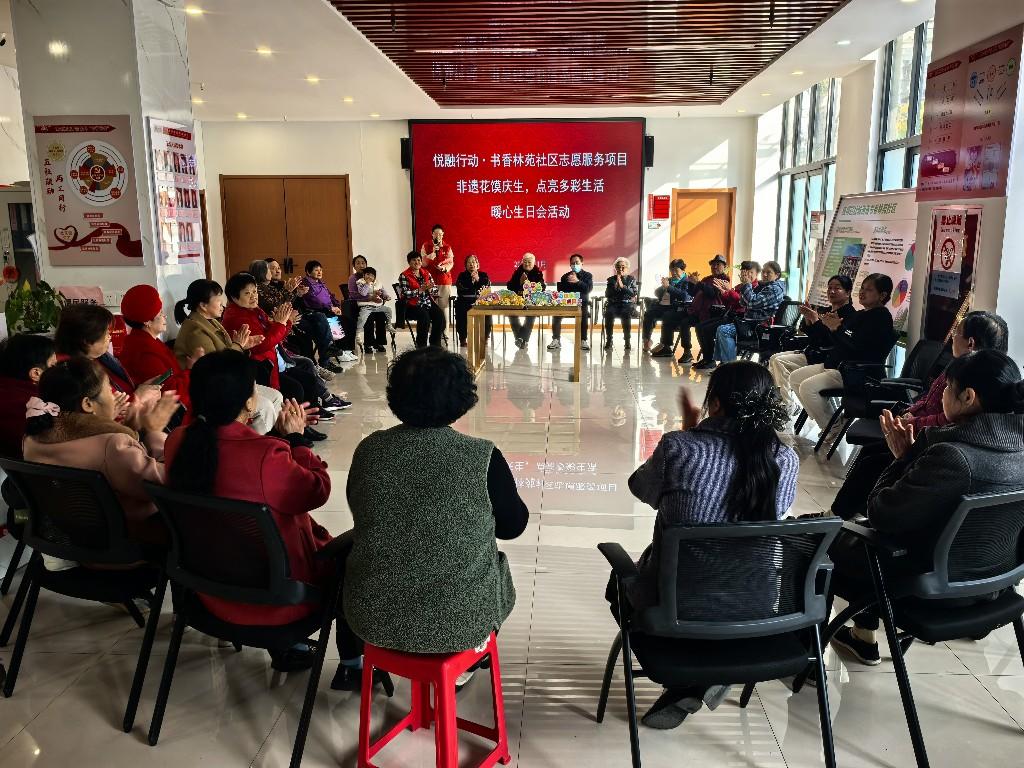 现场歌声响起,居民们轮番献唱,随后一一为寿星送上真挚祝愿。在《生日快乐》的合唱声结束后,老人们分享生日感言。