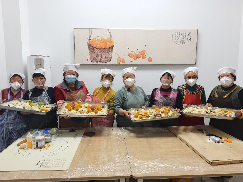 说干就干!社区立即在居民中寻找做花馍的能人。68岁的韩粉叶第一个响应:“我小时候经常看妈妈做花馍。后来,家里人过生日,我们不买蛋糕,就蒸花馍吃。现在,连我小孙子过生日,都叫我做花馍,还请同学一起来吃!”