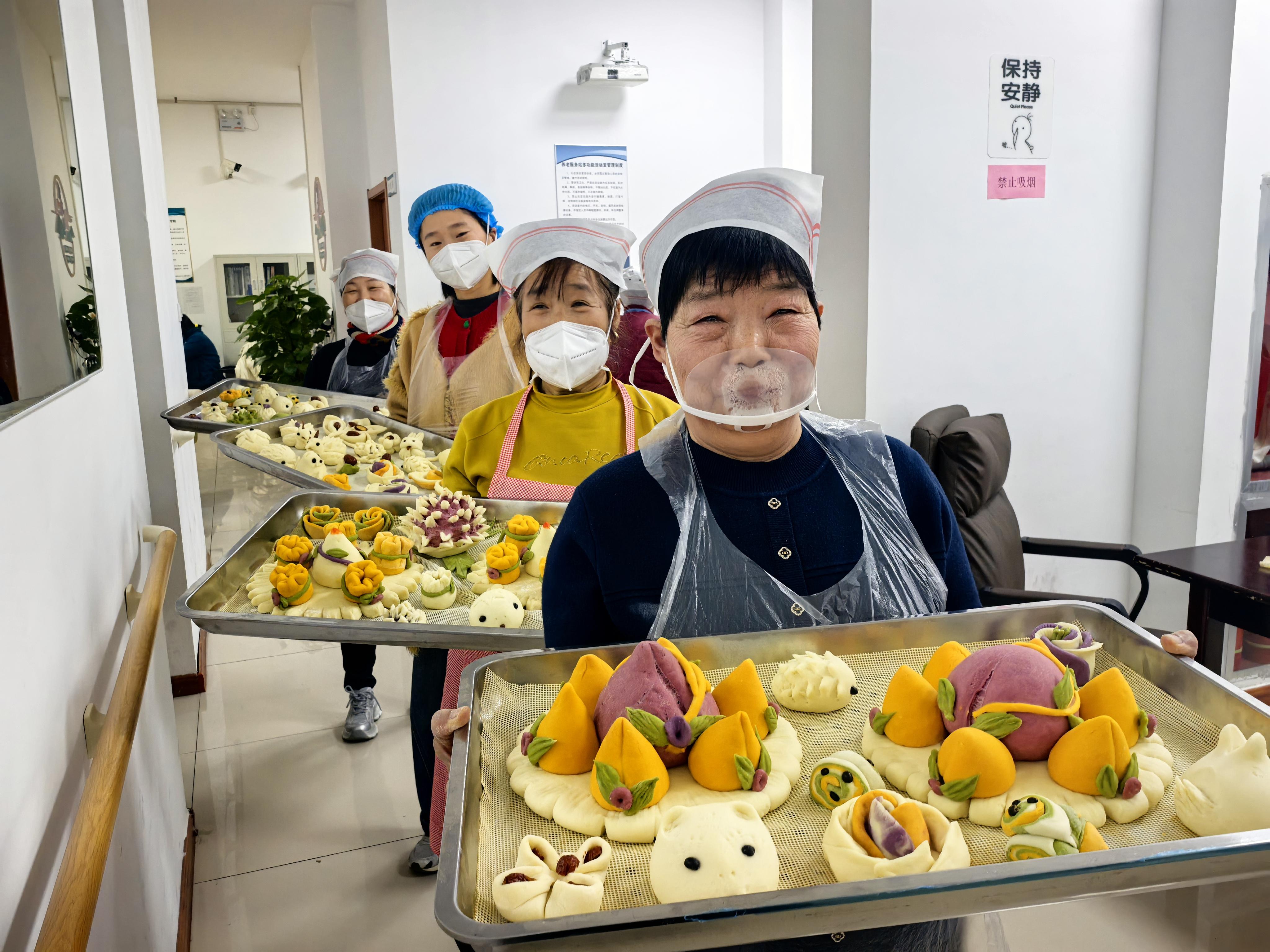 韩粉叶指着花馍介绍:“你看,绿色的是菠菜汁做的,黄色是南瓜做的,都是天然食材,没色素、没防腐剂,老人吃了放心。”
