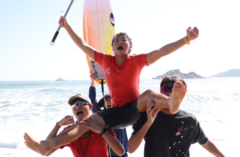 “第一次参加全运会就能获得冠军,很开心。”吴世栋说,“今天我发挥挺好的,做好了自己,而且今天天气也帮助了我的发挥,浪好浪大。”