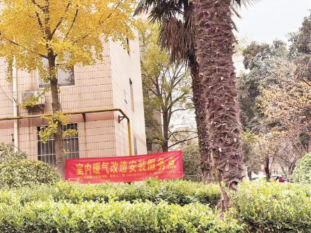 丰盛园小区里宣传室内暖气管道改造的横幅。