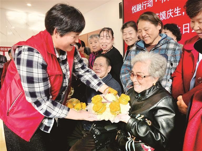 “用花馍替代蛋糕,既健康,又传承了非遗技艺!”该社区党支部书记、居委会主任王付英端起一盘花馍,笑容满面地向寿星们送上祝福,“祝大家生日快乐!”