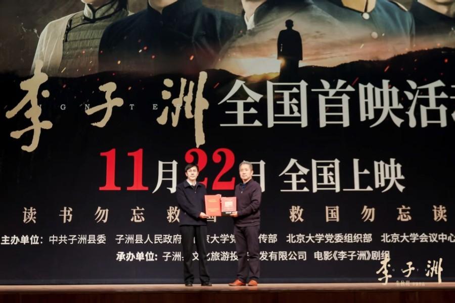 三秦都市报-三秦网讯(记者 李波)11月16日,电影《李子洲》全国首映活动在北京大学百周年纪念讲堂成功举行。本次活动以“百年不忘 救国读书”为主题,由中共子洲县委、子洲县人民政府、北京大学党委宣传部、北京大学党委组织部、北京大学会议中心及榆林学院联合主办,子洲县文化旅游投资开发有限公司与电影《李子洲》剧组共同承办。该片将于11月22日在全国公映。