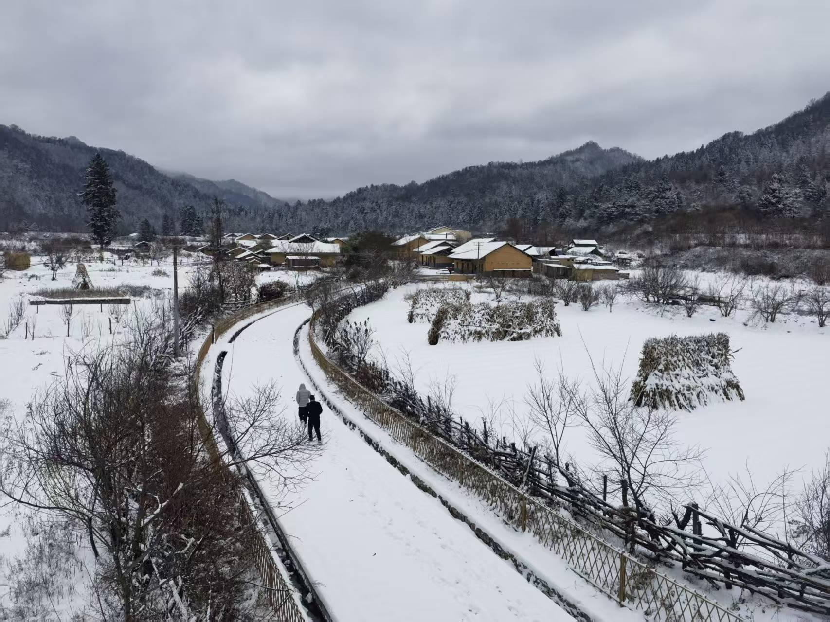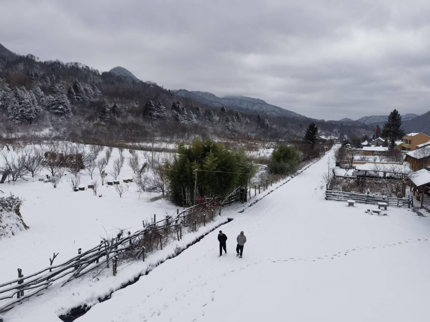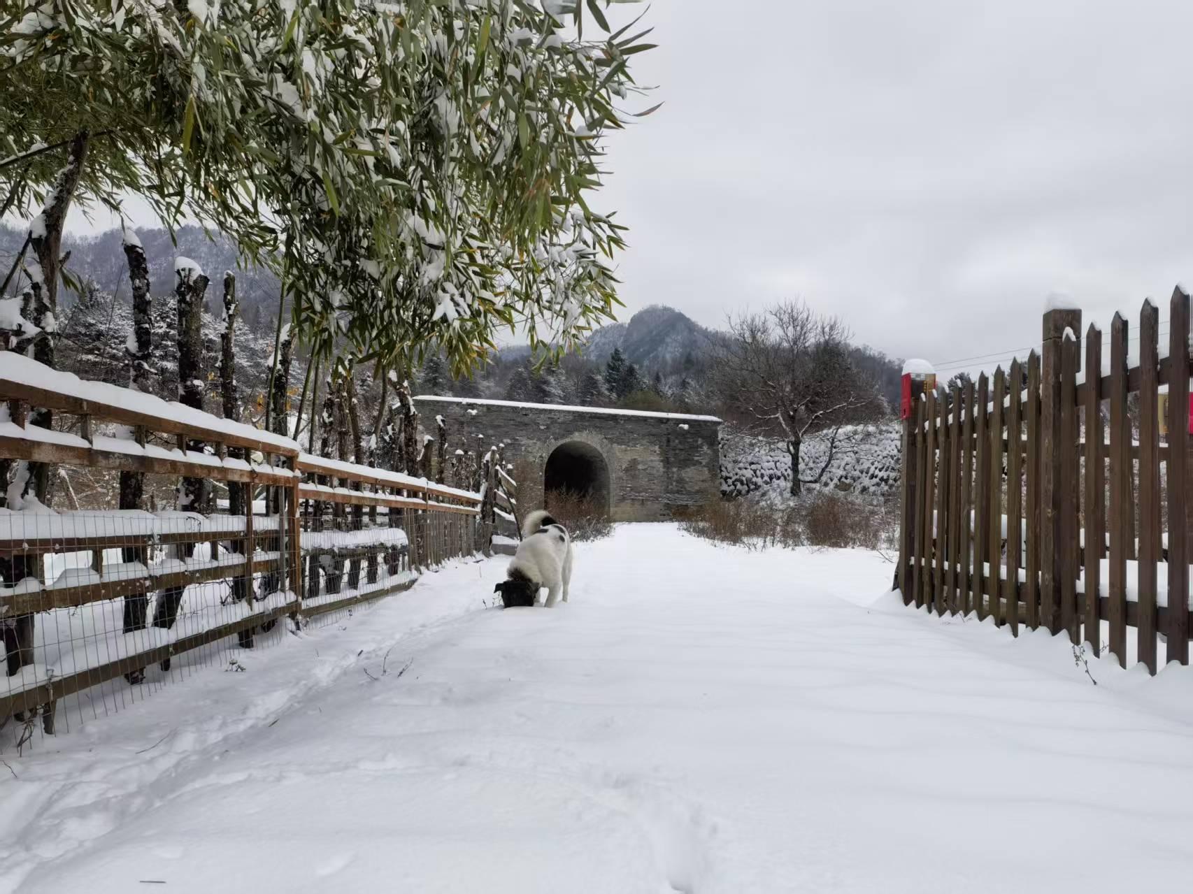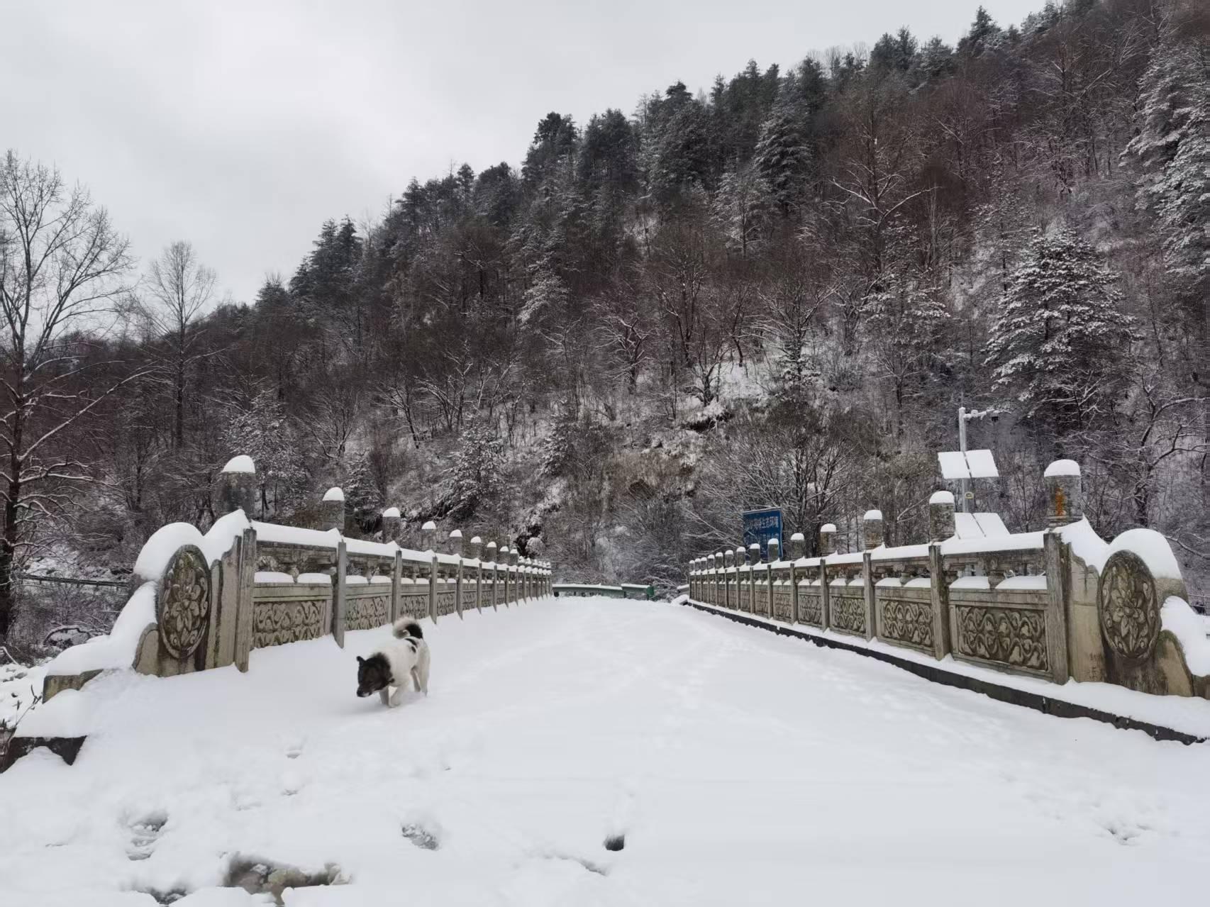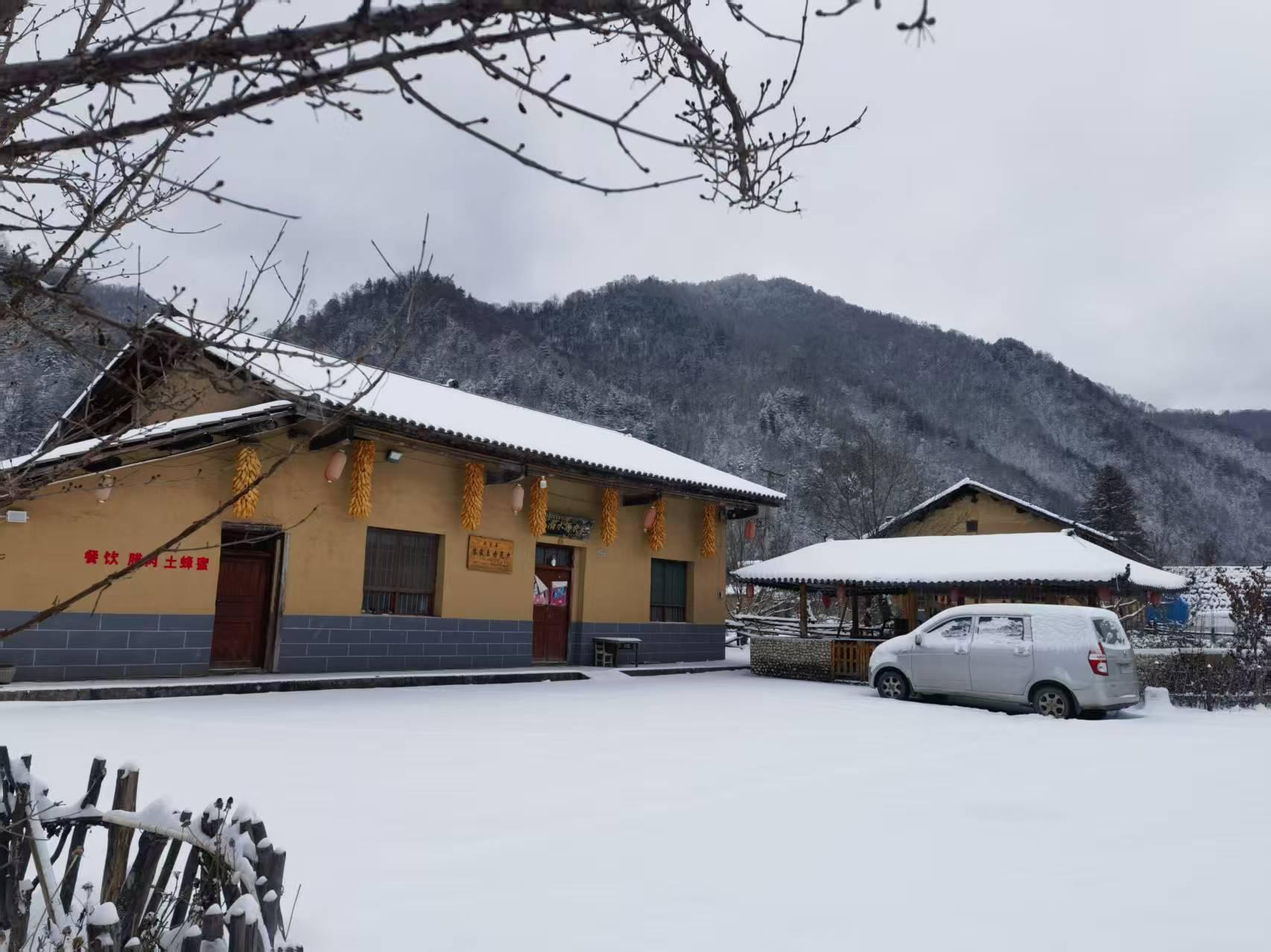 三秦都市报-三秦网讯(李刚 记者 代泽均)11月17日,秦岭腹地周至老县城迎来初雪,群山披上银装,宛若童话般的世界。