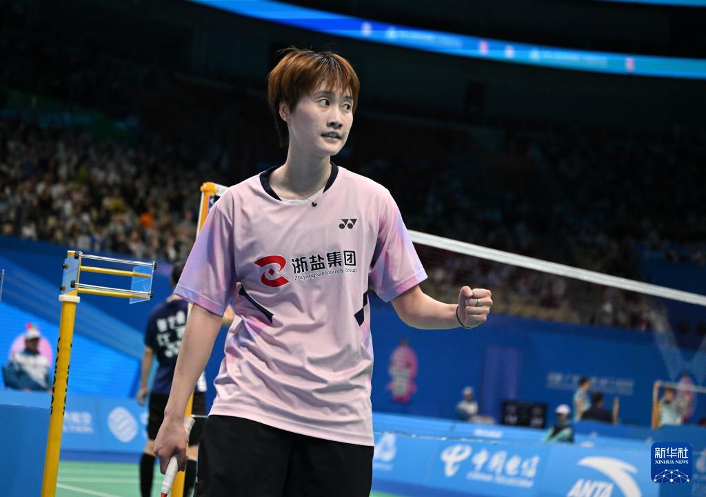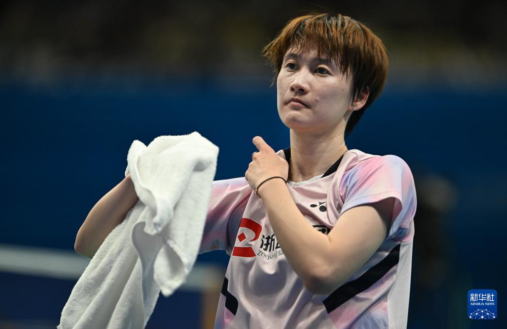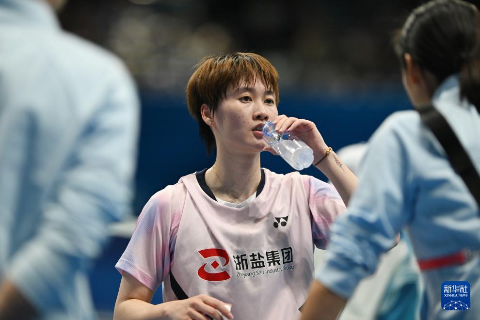 11月17日,浙江队选手陈雨菲在比赛间歇。她2比1战胜江西队选手张艺曼,晋级半决赛。