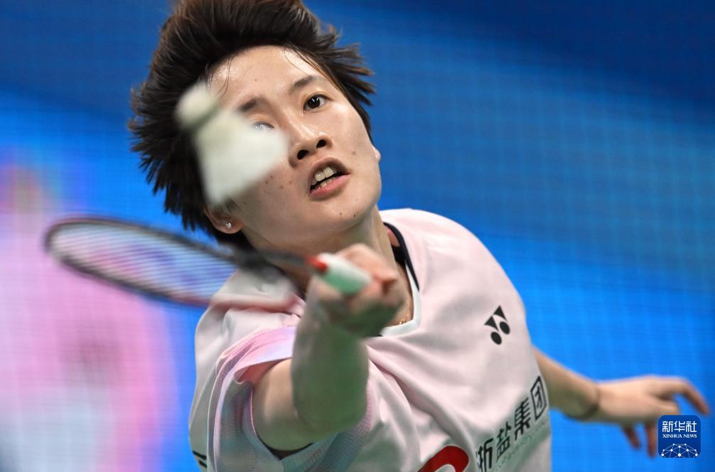 11月17日,浙江队选手陈雨菲在比赛中回球。她2比1战胜江西队选手张艺曼,晋级半决赛。