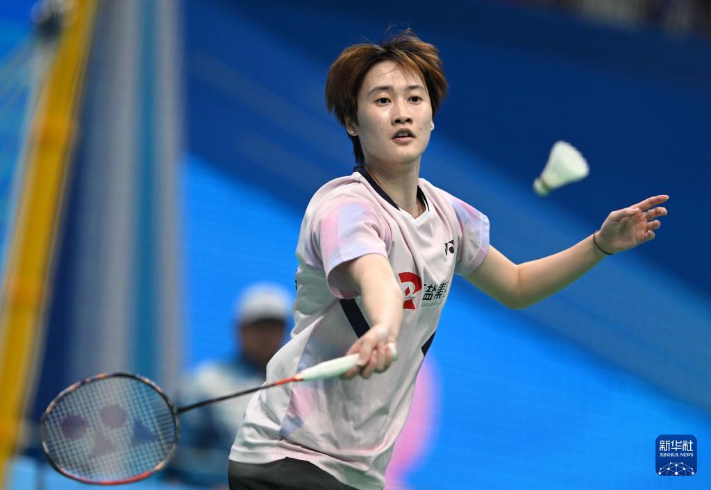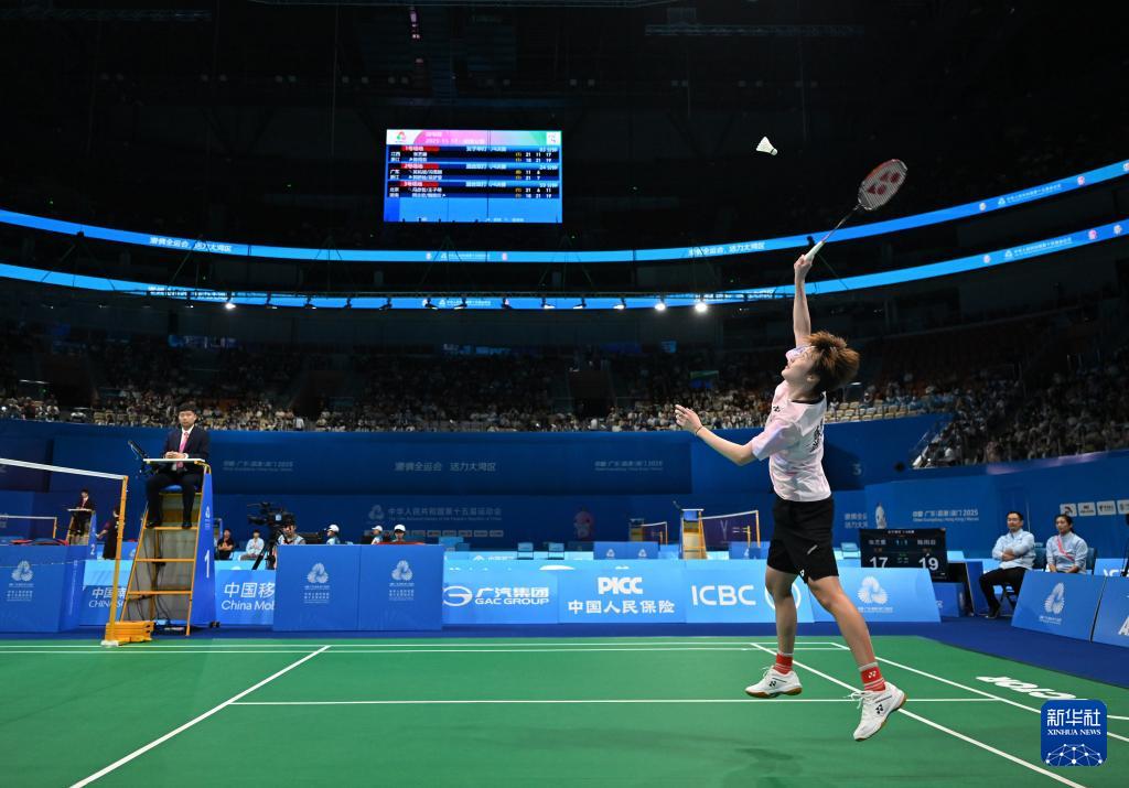 当日,第十五届全国运动会羽毛球女子单打四分之一决赛在广东深圳举行。