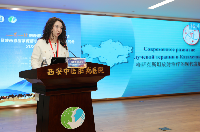 本次大会由陕西省医学传播学会、陕西省医学传播学会放射治疗专业委员会主办,西安中医脑病医院、西安歧奥丰脑病研究所承办,以“聚焦脑肿瘤精准诊疗,深化‘一带一路’医疗合作”为主题。来自哈萨克斯坦、吉尔吉斯斯坦以及国内放射治疗、肿瘤、神经外科、核医学等领域的近60名专家、学者作专题报告,吸引200余人到场参会,众多行业从业者线上观看。