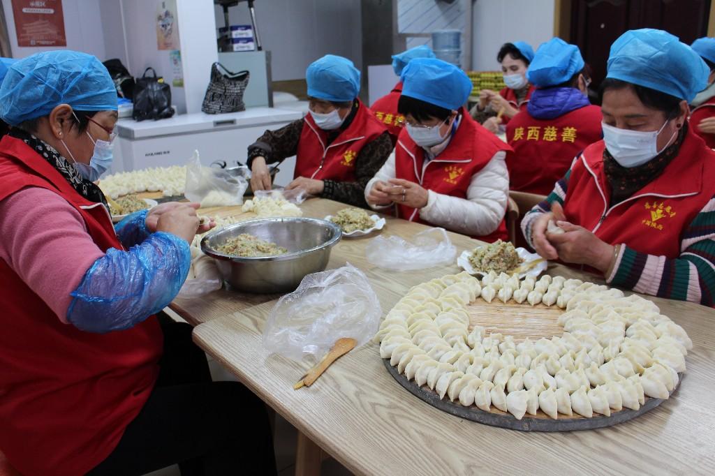 当天上午,志愿者们早早抵达,洗净双手,系上围裙,迅速投入准备。有人负责擀皮,有人专攻包制。