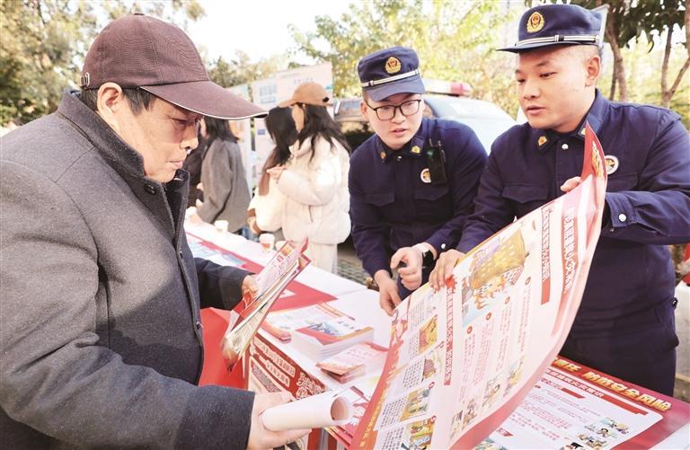 消防救援服务点前,雁塔消防救援大队沈家桥一路消防救援站的消防员向居民发放“防范高层建筑火灾常识”海报,重点讲解冬季家庭用火用电安全、厨房油锅起火处置、老旧电器检查、电动车规范充电等知识,“油锅起火千万不能泼水,要用盖子或湿毛巾覆盖灭火。”实用的提醒让居民受益匪浅。