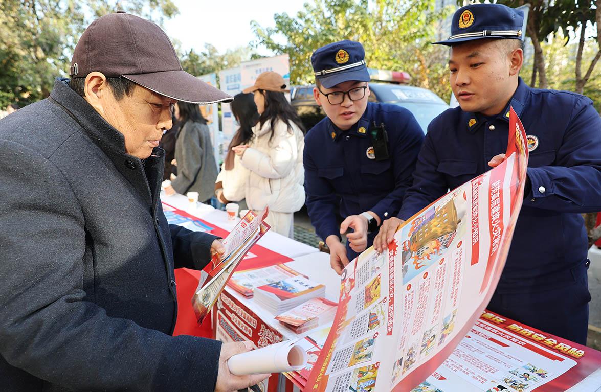 消防救援服务点前,雁塔消防救援大队沈家桥一路消防救援站的消防员向居民发放“防范高层建筑火灾常识”海报,重点讲解冬季家庭用火用电安全、厨房油锅起火处置、老旧电器检查、电动车规范充电等知识,“油锅起火千万不能泼水,要用盖子或湿毛巾覆盖灭火。”实用的提醒让居民受益匪浅。