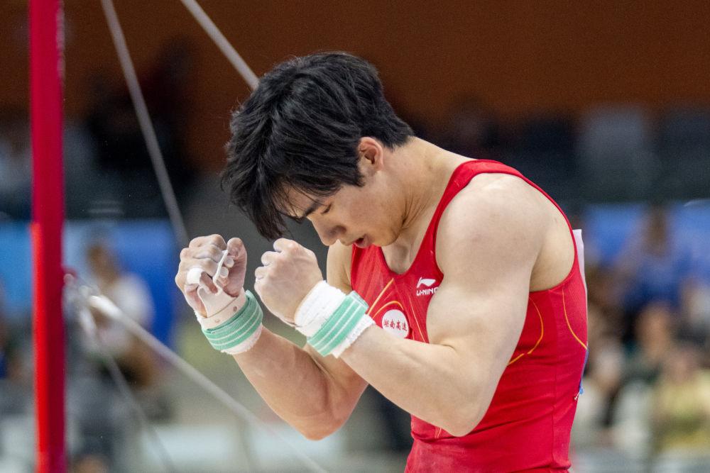 体操赛场,湖南名将张博恒在几次冲金受挫后,以一套干净利落的动作问鼎男子单杠;四川队邹敬园则加冕男子双杠。