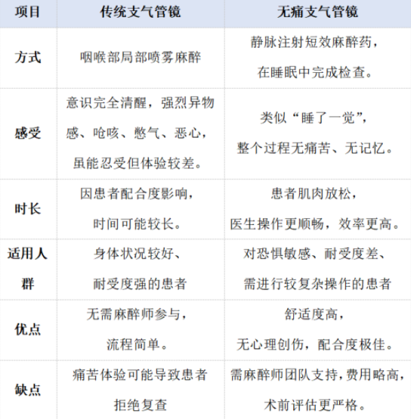 传统支气管镜VS无痛支气管镜