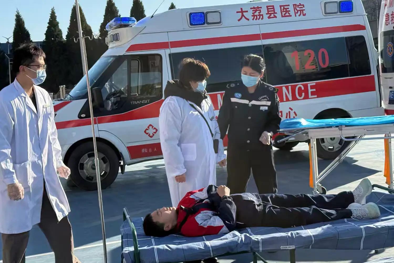 演练以“学生食用沙门氏菌污染卤鸡腿引发食物中毒”为场景,模拟冯翊初中八二班、八三班多名学生相继出现腹痛、腹泻、呕吐等症状,任课教师发现后立即上报学校。校方迅速启动应急预案,联系县医院派出救护车转运32名患病学生,同时第一时间向县教体局、市场监管局南区办报告情况。