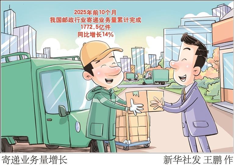 当日,国家邮政局公布邮政行业运行情况。前10个月,我国邮政行业业务收入累计完成14700.5亿元,同比增长7.7%。其中,快递业务收入累计完成12174.1亿元,同比增长8.5%。