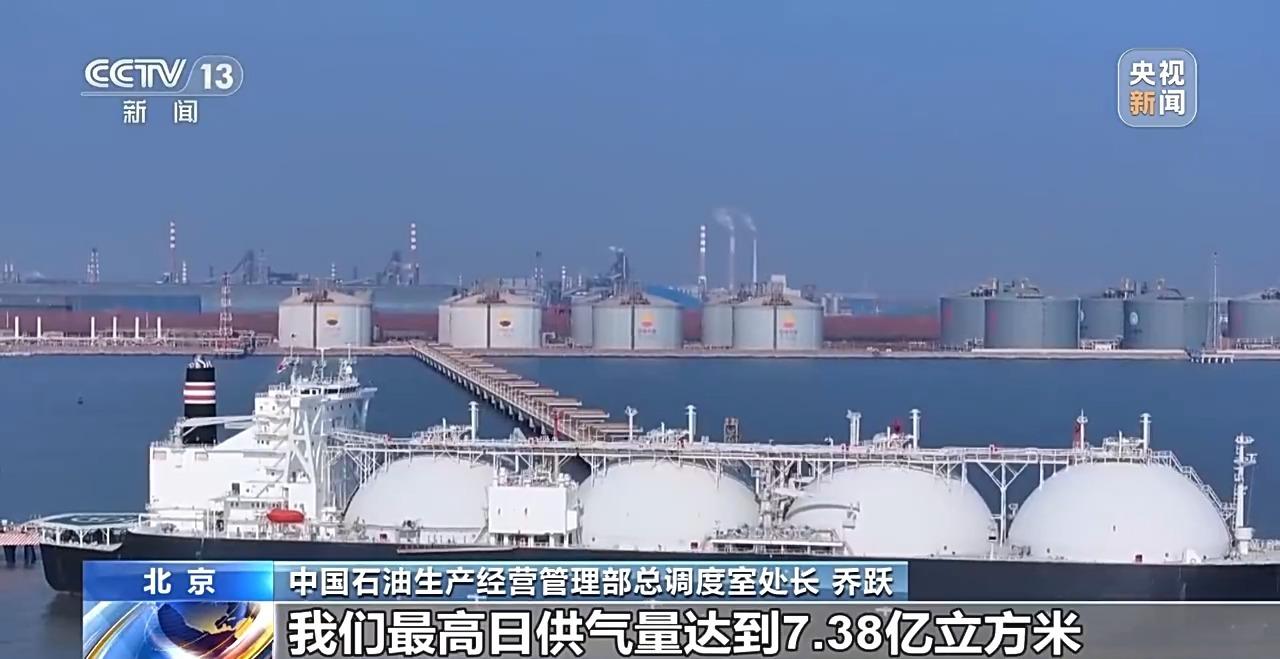 中国石油生产经营管理部总调度室处长 乔跃:我们组织长庆、塔里木、西南、青海等油气田开足马力,全力增产;我们最高日供气量达到7.38亿立方米,保障北方地区集中供暖。