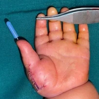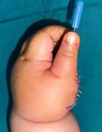 接诊后,面对患儿复杂的肢体畸形情况,拥有丰富儿童先天肢体畸形矫形经验的李会晓副主任,对患儿进行了全面细致的评估。结合患儿手指解剖结构、实际功能需求及未来生长发育特点,李会晓副主任与主管医生夏医生共同制定了个性化精细化功能重建方案,通过多指切除、截骨矫形骨骼力线、重建肌腱止点等关键步骤,不仅要去除多余指体,更要最大限度保留和恢复手部功能与美观度。