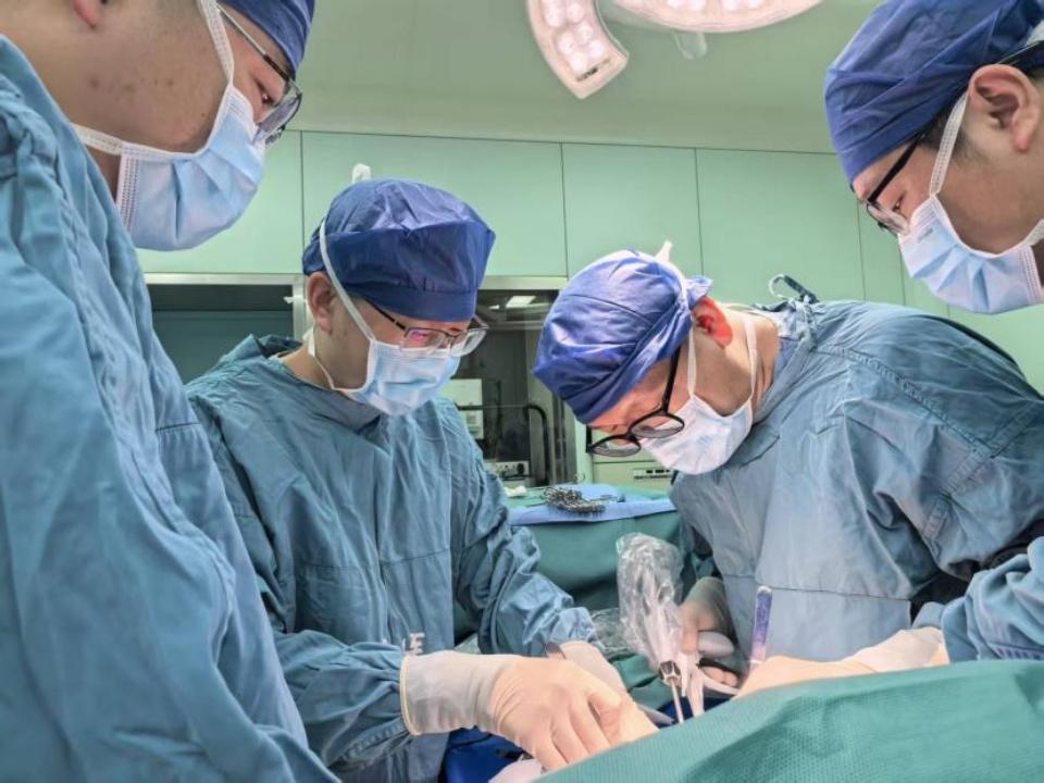 接下来的手术,成了考验耐力与精度的“攻坚战”。手术团队屏住呼吸,在狭窄的视野里小心翼翼地分离、结扎,逐一离断供应肿瘤的血管和致密的粘连组织。每一个动作都精准到毫米,每一次结扎都力求稳妥,手术过程如履薄冰,手术室里只有器械轻微的碰撞声和医护人员的呼吸声。