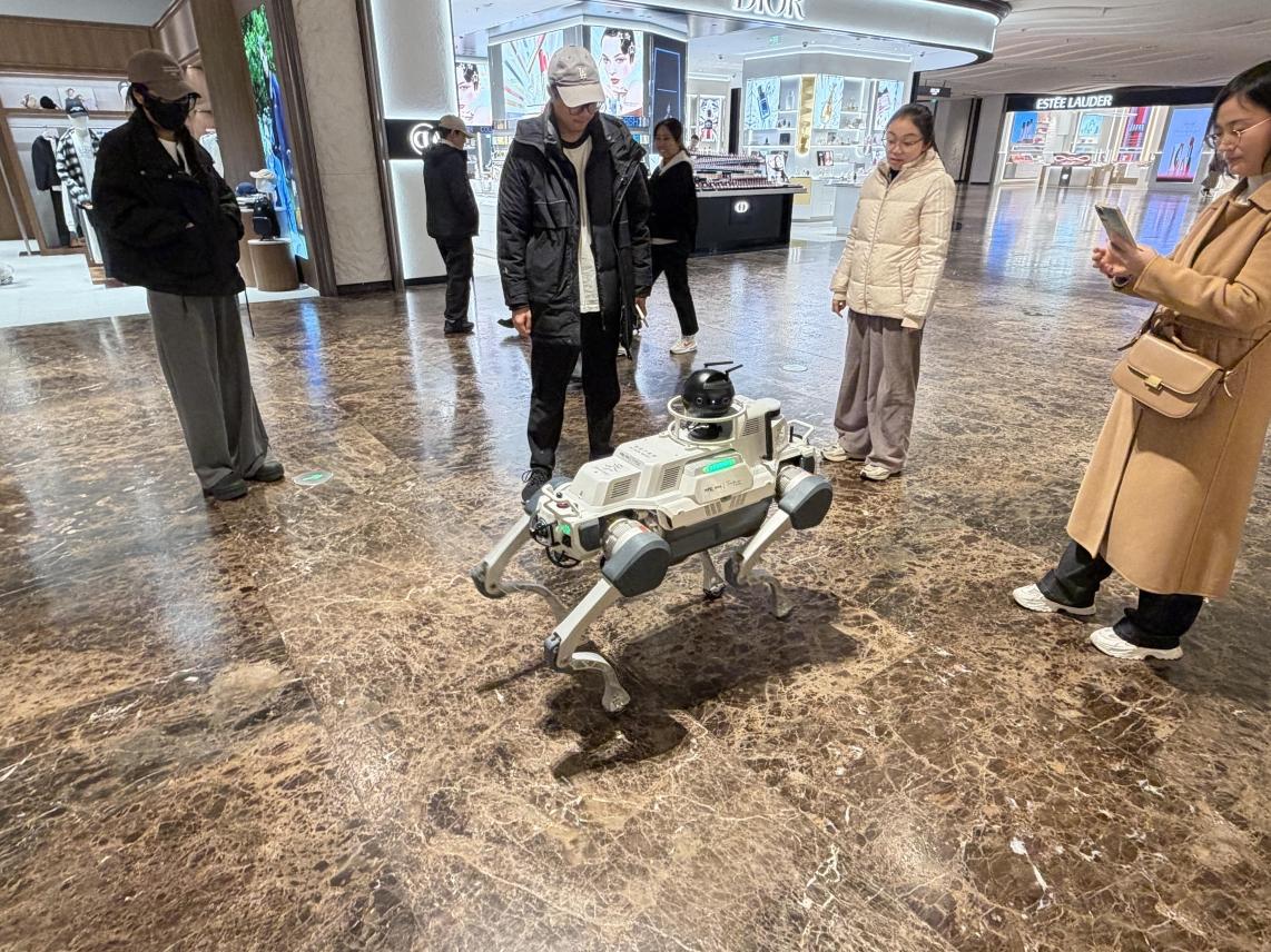 三秦都市报-三秦网讯(记者 王娇莉 见习记者 张桢璐 宋可青)银黑相间的外壳泛着科技光泽,四肢矫健如猎豹般灵活穿梭,头部高清摄像头精准捕捉着每一处细节——西安万象城的试用机器狗一亮相,就凭借灵动身姿成为商场里的“流量新宠”,引得顾客纷纷驻足围观、拍照打卡。“这款智能机器狗可不只是颜值高、互动强,还藏着实用功能——现在还在测试中,能帮我们检查地面水渍、污渍,提前排查安全隐患和清洁死角。”现场工作人员的介绍,让这只“赛博萌宠”更添实用魅力。