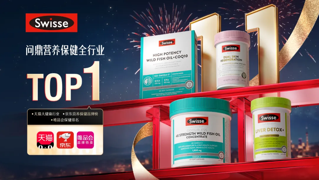 榜单显示,Swisse斯维诗在今年双十一继续稳居营养保健行业No.1,霸榜天猫、京东、唯品会三大电商平台,销售额同比增长6%。