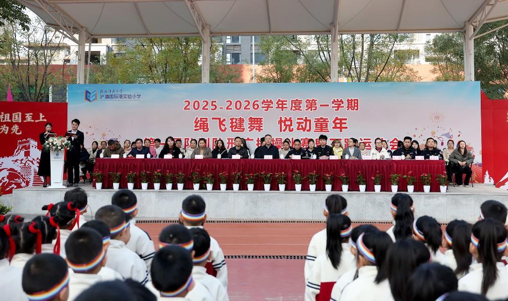 三秦都市报-秦闻讯(记者 王顺)11月20日,陕西师范大学浐灞国际港实验小学的操场上彩旗飘扬,人声鼎沸。全校师生及家长代表齐聚一堂,共同迎来学校首届队列广播操比赛暨三跳运动会的开幕。此次活动不仅是对学生身体素质的全面检阅,更是学校体育工作成果和师生精神风貌的集中展示。